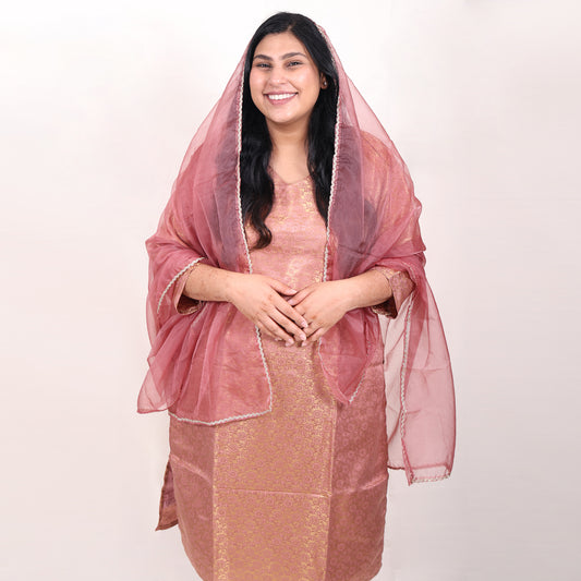 Banarasi Rose Gold Suit with Dupatta