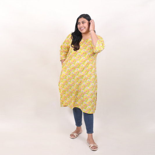 Lemon Coral Floral Long Kurti