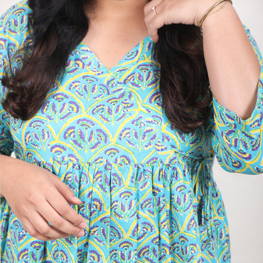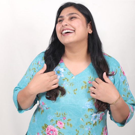 Aqua Paisley & Floral Long Kurti