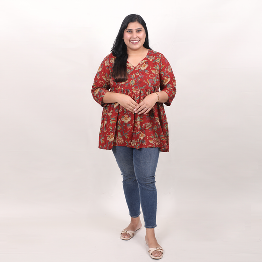Sold outMaroon Floral Peplum Top