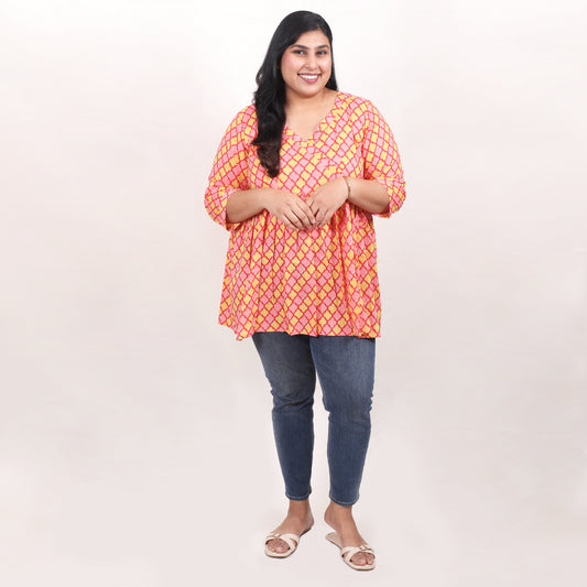 Pink & Yellow Clovers Peplum Top