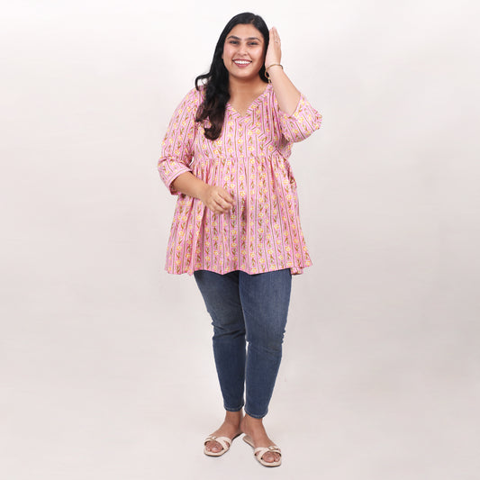 Pink with Yellow Roses Peplum Top